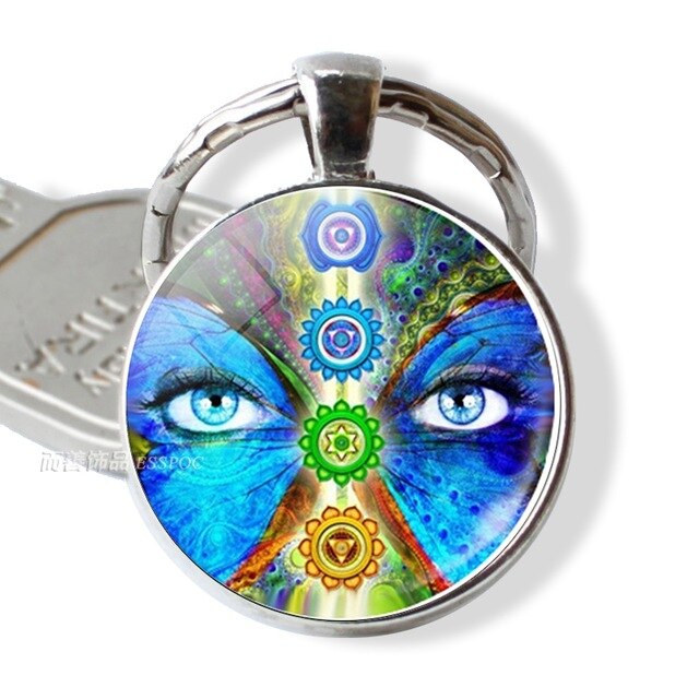 7 Chakra Yoga Om Symbol Keychain Pendant Men Women Vintage Car Key Chain Key Rings Indian Meditation Jewelry