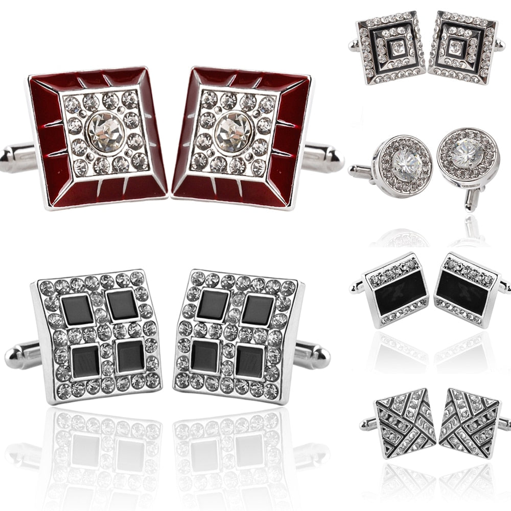8 Styles Crystal Cufflinks For Mens Shirt Cufflink Wedding Suit Wedding Party Banquet Grooms Gentelmen Cuff Links Copper Enamel