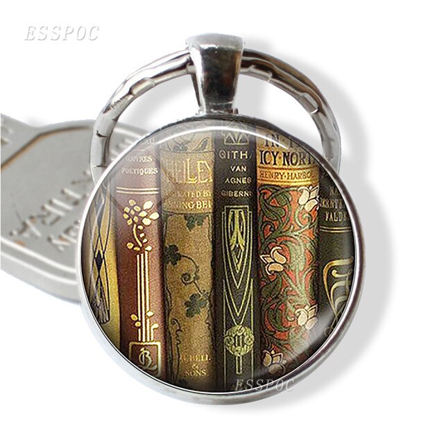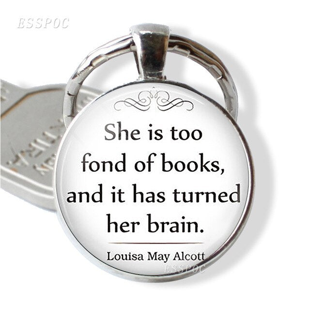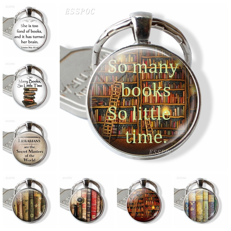 Books and Library Keychain " So Many Books, So Little Time " Quotes Glass Cabochon Pendant Women Fashion Jewelry Gift for Friend